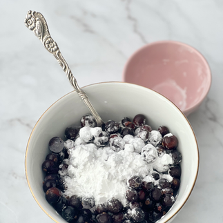 Sega mustsõstrad kartulitärklise, tuhksuhkru ja 0,5 tl kaneeliga.