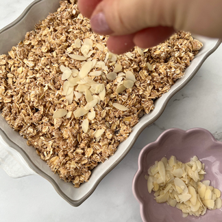 Katte tegemiseks näpi sõrmede vahel või haki noaga küpsetussegu koos külma võiga suureteraliseks puruks, laota ühtlase kihina marjadele ning puista peale mandlilaastud.