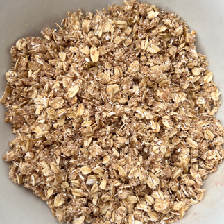 Sega kausis täisterakaerahelbeküpsiste küpsetussegu koos 1 tl kaneeliga.